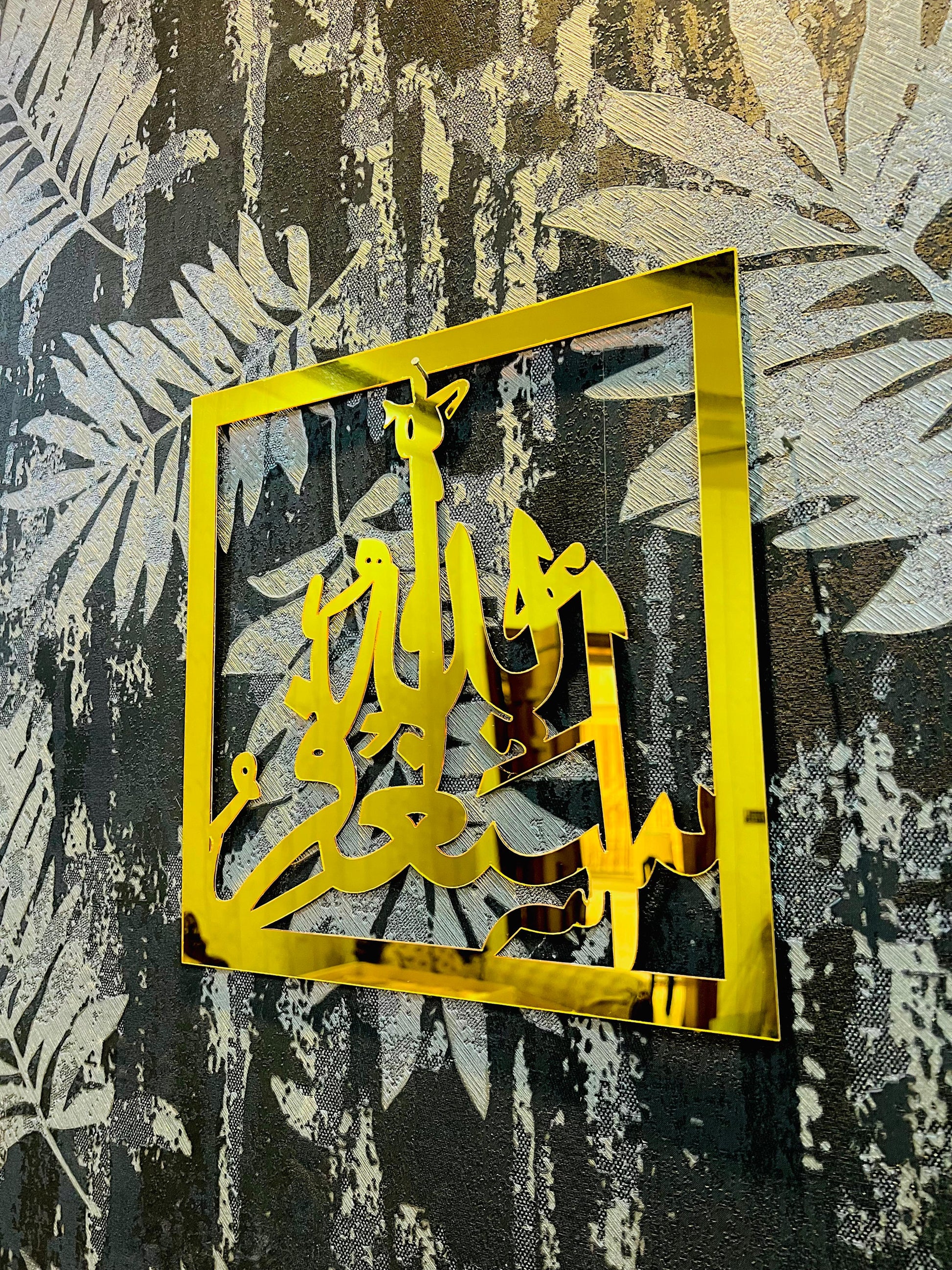 This elegant set of 3 Islamic wall frames features beautifully inscribed Arabic calligraphy crafted from premium golden acrylic. The contemporary square design adds a luxurious and spiritual element to your living room, hallway, or prayer area, making it an ideal piece for those who appreciate Islamic art with a modern touch.